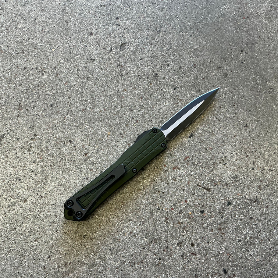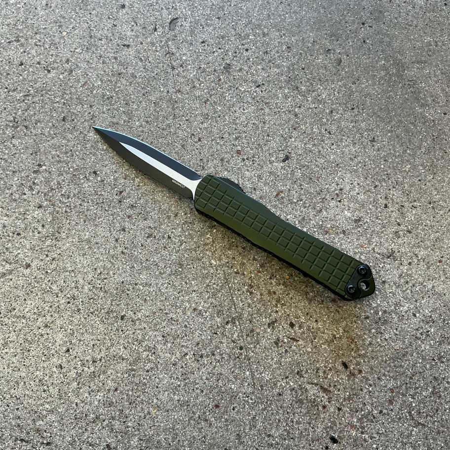 HERETIC KNIVES MANTICORE S OTF AUTOMATIC KNIFE OD GREEN FRAG 2.6" MAGNACUT DAGGER TWO-TONE H024F-10A-GRN