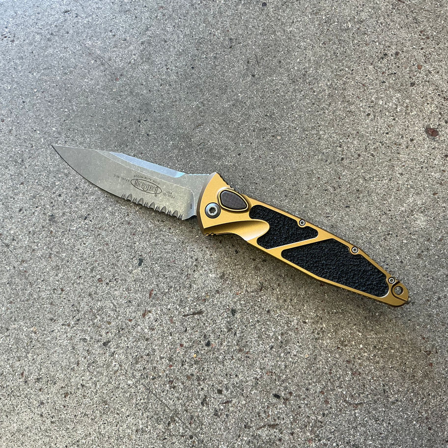 Microtech Socom Elite 160-11APTA Tan Single Edge Apocalyptic Partial Serrated